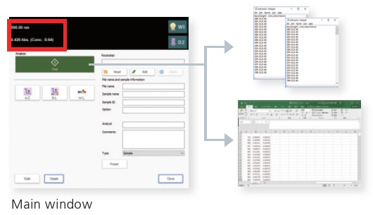 VisEase ist eine vereinfachte Messsoftware, die es Benutzern ermöglicht, direkt und so einfach wie möglich an die Messdaten zu kommen - ohne Datenanalyse, Berichterstellung oder Drucken. Alle notwendigen Funktionen, von der Auswahl des Messmodus über den Start der Analyse bis hin zur Einstellung der Wellenlängen, sind in einem vereinfachten Hauptfenster integriert und ermöglichen eine einfache Ein-Klick-Bedienung. Sie ist ideal für Benutzer, die lediglich Messwerte anzeigen und abspeichern oder in Excel®verarbeiten möchten.
